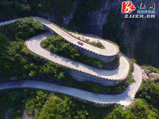 天門(mén)山通天大道,蜿蜒逡巡于高山絕壁,全長(zhǎng)10.77公里, 近1100米高海拔落差,密布99道呈180°旋轉(zhuǎn)急彎,扶搖直上九重云霄,以“驚、奇、偉”著稱(chēng),有著“中國(guó)極限道路之王”和“天下第一公路奇觀”的美譽(yù)。F1世界冠軍哈基寧,著名影星蘇有朋、孫紅雷,臺(tái)灣知名藝人歐弟,主持人撒貝寧等眾明星都曾在通天大道創(chuàng)造駕控傳奇。