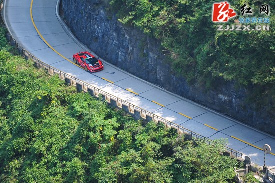 紅網(wǎng)張家界站9月21日訊 (記者 向韜 通訊員 丁云娟)9月21日,一場(chǎng)驚險(xiǎn)刺激的法拉利極速挑戰(zhàn)活動(dòng)在天門(mén)山99彎通天大道上精彩上演。來(lái)自歐洲知名法拉利俱樂(lè)部——意大利紅色激情法拉利俱樂(lè)部的主席法比奧.巴隆,駕駛法拉利賽車(chē)在通天大道創(chuàng)造了10分31秒的個(gè)人極速挑戰(zhàn)紀(jì)錄。